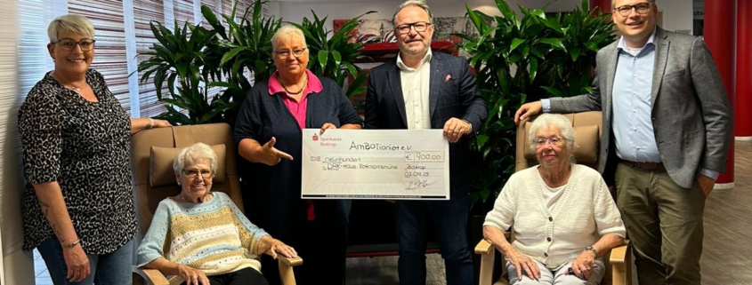 Das Bild zeigt die Bewohnerinnen Frau Pass und Frau Lammers, die Leitung der Einrichtung, Frau Werner und die amBOTionierten Mitglieder Nicole Eifeld und Paul-Stephan Schütte sowie Matthias Buschfeld.